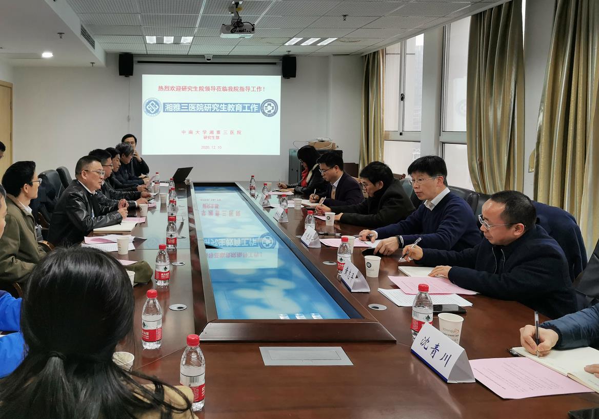 12月10日下午,中南大学研究生院院长蒋丽忠一行相关领导来到湘雅三医院进行研究生教育工作调研,院长张国刚出席,内科、外科、妇产科、儿科、特种医学等教研室主任、学位评定委员会委员、研究生教育方向负责人及研究生部、教务部相关工作人员参加调研会议。会议由党委副书记杨飞龙主持。