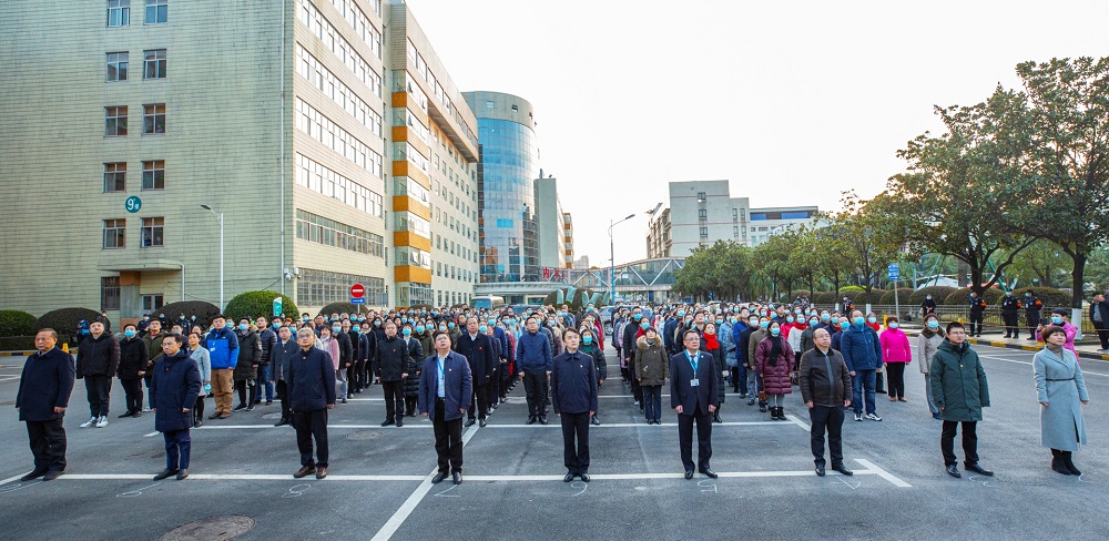 2020年12月31日7点30分,中南大学湘雅三医院在医院综合楼前坪举行了迎新年升旗仪式。