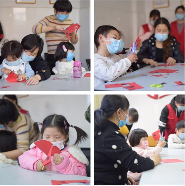 活动从心理暖身游戏“乌鸦与乌龟的故事”开始。小朋友们和家长一道积极参与互动,现场一片欢快热闹。春节是中国最具有代表性的传统节日,过新年时家家户户都会贴上各种图案的窗花,给单调的冬季点缀上不一样的色彩,因此活动上特别举行了“巧手剪窗花”家庭亲子活动。医务社工林雪介绍了窗花的由来、种类以及做法,在医务社工、爱心志愿者的带领下,大家围坐在一起,在轻松愉快的氛围下纷纷动起剪刀,一纸一剪体验新年文化习俗,裁剪属于自己的新春窗花,迎接牛年的到来。