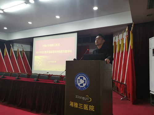 为进一步做好新冠病毒的院感防控工作,提升自身防护意识,更好地为临床一线做好服务,2月1日上午,中南大学湘雅三医院第十党总支牵头,医院后勤保障部、医院感染控制中心共同组织后勤系统职工、各相关供应厂商和外包公司在院服务人员等100余人,进行新冠病毒感染院感防控专题培训。医院感染控制中心副主任周鹏程、片区培训员戴娟、后勤保障部副主任龙烁授课,医院感染控制中心主任曾赛男到现场进行指导。会议由第十党总支书记黎俊平主持。
