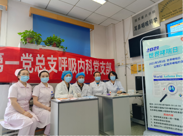 5月7日,中南大学湘雅三医院第一党总支呼吸内科党支部举办“2021世界哮喘日专家义诊暨哮喘防治知识宣传讲活动”,呼吸与危重症医学科孟婕主任、刘纯副主任、谢丽华副主任、徐放明教授、杨阳护士长及主管护师杨国莉在现场为群众进行了健康义诊和科普宣传。2021年5月5日,是第二十三个世界哮喘日。今年的主题旨在:揭开哮喘的误区,呼吁大家采取行动,解决关于哮喘普遍存在的“误区”或“误解”。此次义诊活动旨在提高广大患者防治哮喘的意识,倡导规范化、科学化诊疗模式。