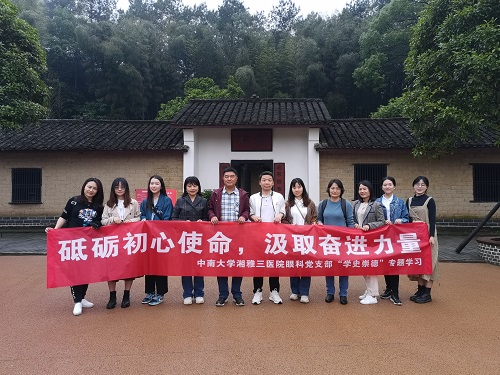 5月23日,中南大学湘雅三医院眼科党支部11人赴长沙县杨开慧故居开展“学史崇德”专题学习活动。活动旨在让党员们重温党的伟大发展历史,缅怀革命先辈,响应中南大学湘雅三医院党委“学史明理、学史增信、学史崇德、学史力行”的号召。