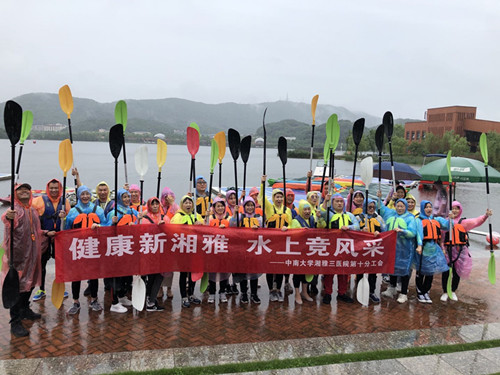 黄飞舟在讲话中表示,湘雅三医院一直以来都非常重视文化建设和职工身心健康。今年,医院工会更是把“职工健康”作为活动主题并且开展了一系列的活动。第十分工会在跳绳比赛、环西湖健步走活动中都取得了团体第一名的好成绩,说明第十分工会是一个很团结、很上进的大集体,希望大家继续保持与发扬。他指出,皮划艇是一个历史悠久的水上运动,对很多人来说都是一个新鲜事物,都没有接触和体验过。大家要积极学习运动知识,掌握科学运动技巧,注意运动安全;积极参与全民健身运动,为健康中国、健康三院、健康家庭与个人做出贡献。