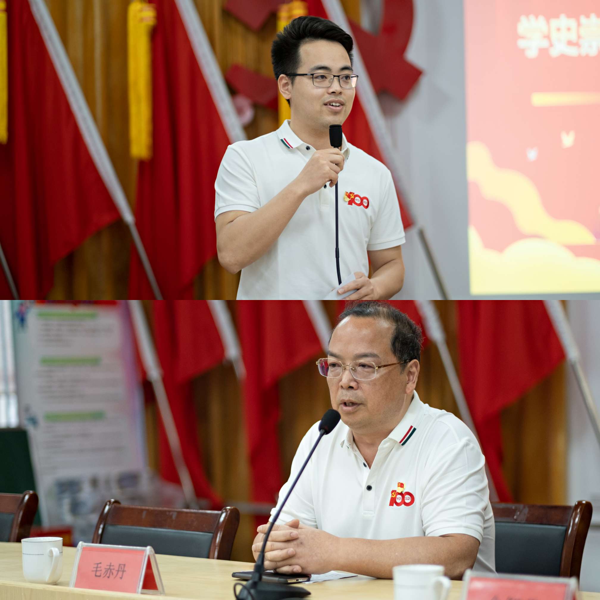 第一站来到雷锋社区党员活动室开展“学史崇德强党性,不忘初心跟党走”党史学习教育。活动分为四个环节,首先,党总支书记代表毛赤丹同志讲话,让党员们对“学史明理、学史增信、学史崇德、学史力行”和“学党史、悟思想、办实事、开新局”有了更深层次的认识;在第二个环节的红歌拉歌活动中,第六党总支演唱的《保卫黄河》点燃了大家的激情,《没有共产党就没有新中国》在七总支演唱下将气氛推向高潮,压轴出场的五总支以一首饱含深情的《东方红》获得大家热烈的掌声。