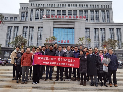 自2012年11月开始,江华瑶族自治县成为国务院扶贫办、中组部等八部门确定的中南大学的定点帮扶县,其医疗帮扶工作主要由湘雅三医院负责。2013年6月,湘雅三医院为江华县人民医院授牌“中南大学湘雅三医院技术指导医院”,与江华县人民政府签署医疗帮扶战略协议,与江华县人民医院签署医疗帮扶合作协议,拉开了医疗帮扶的序幕。