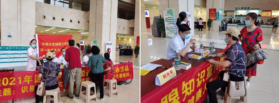 2021年6月10日, 夏日炎炎,端午将至,时逢第13届“国际甲状腺知识宣传周”来临,中南大学湘雅三医院内分泌科医护人员在医院外科楼一楼大厅举办活动主题为“识别百变甲亢、构筑健康人生”甲状腺知识科普宣传及义诊活动。