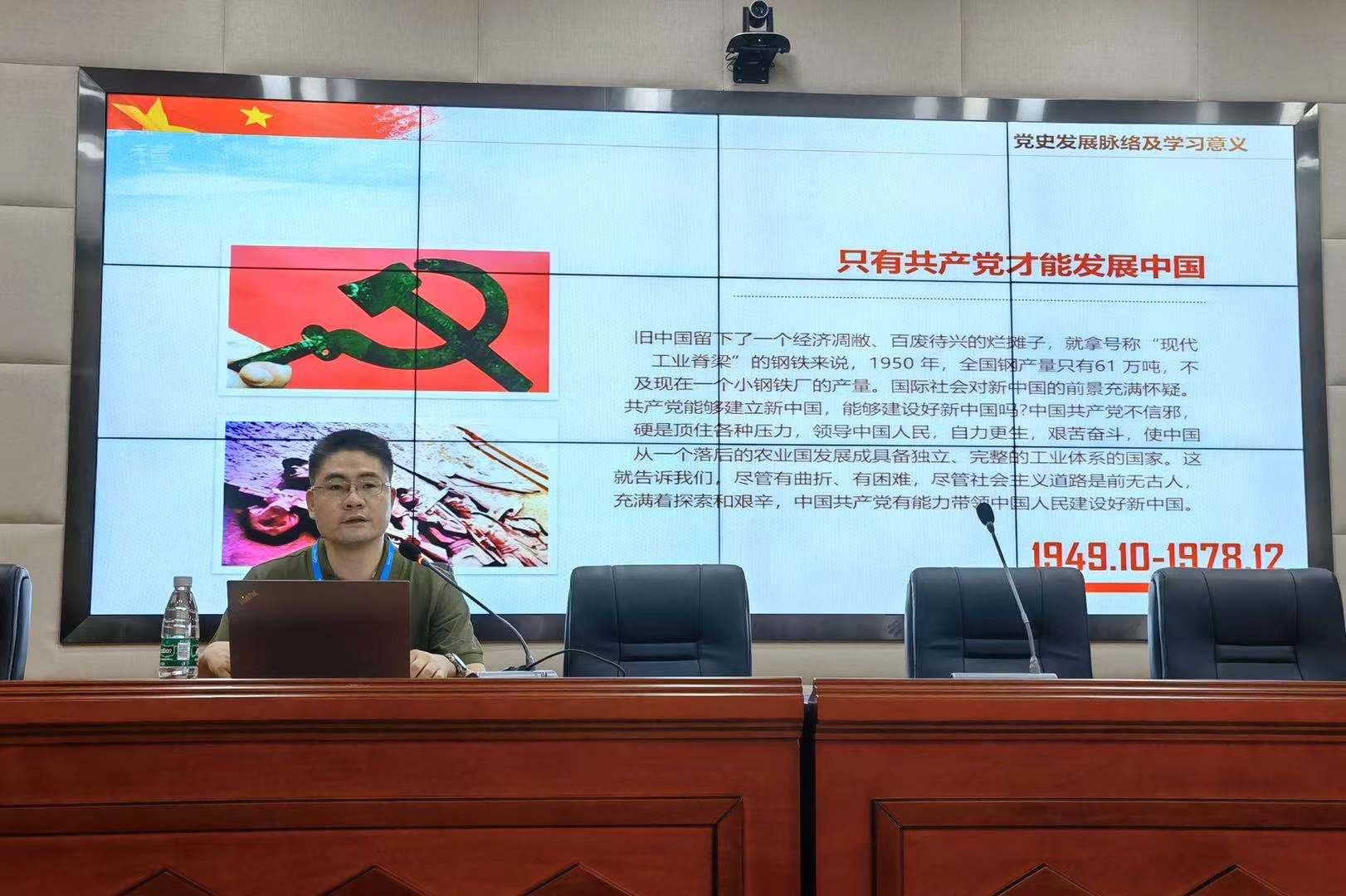 第七党总支书记毛赤丹最后作党课总结,党史学习教育要从认识和实践两个层面出发,认识上,要努力做到“三通”:一是贯通党史、新中国史、改革开放史、社会主义发展史“四史”学习;二是打通学党史、悟思想、办实事、开新局“四个环节”;三是融通明理、增信、崇德、力行“四个目的”。实践上,要以党支部为基本单位,以主题党日为载体,开展丰富多彩的学习活动,进一步加强党史学习教育,增强思想自觉与行动自觉,为实现中华民族伟大复兴贡献更大的新湘雅力量。