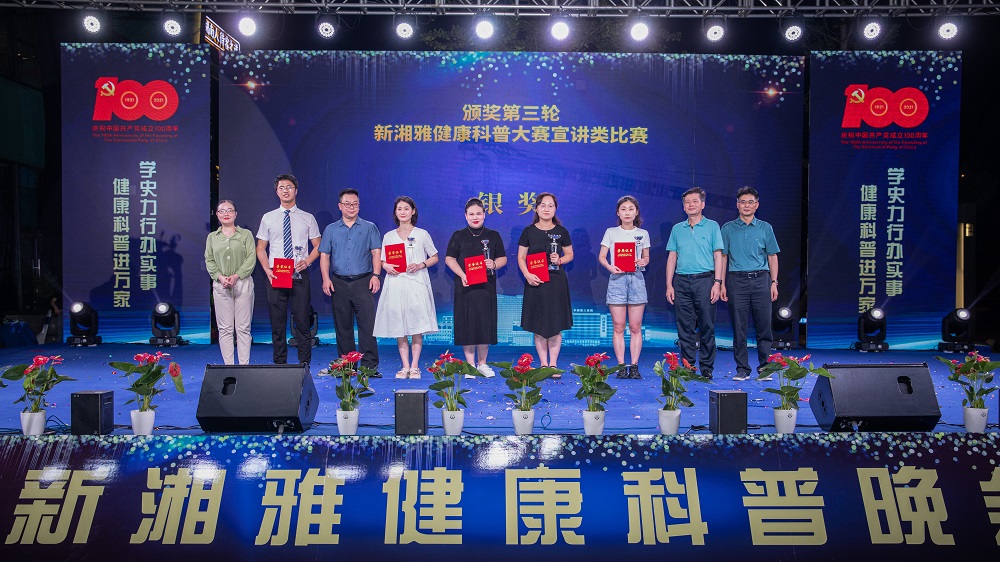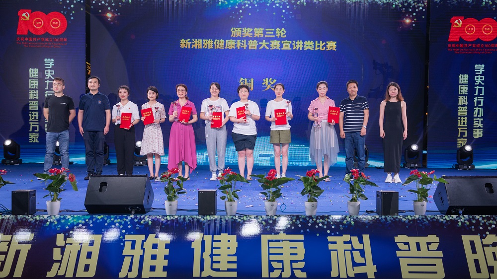 为深入开展党史学习教育,以实际行动献礼建党100周年,7月7日晚,中南大学湘雅三医院与望城区政府联动,共同举办“学史力行办实事 健康科普进万家——2021新湘雅健康科普大赛”。15个健康科普作品以人民群众喜闻乐见的歌舞、小品、相声、情景剧等舞台表演形式,将健康服务送到基层,送到居民家门口。约600名观众在现场观看演出,260万余名观众通过红网、芒果V直播观看了网络直播。