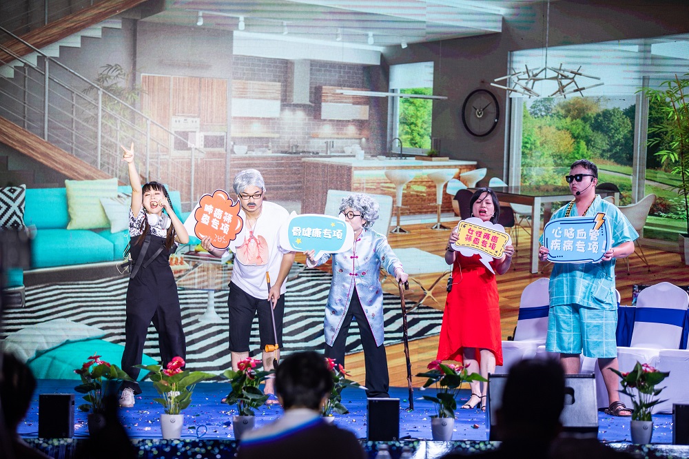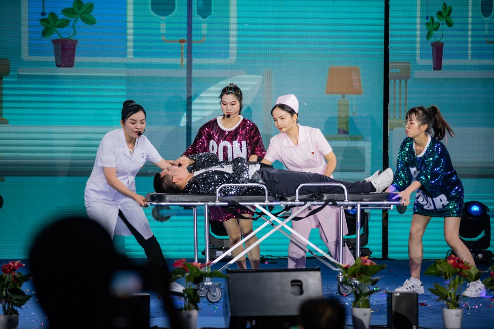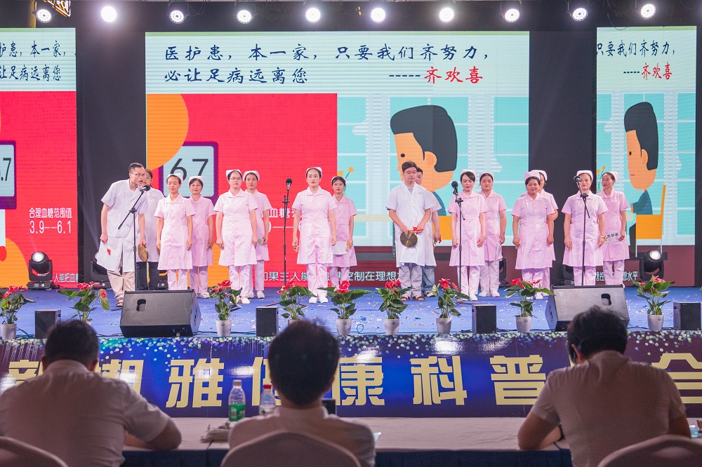望府路社区带来了精彩的开场舞蹈《点亮中国》。中医科、泌尿外科、呼吸与危重症医学科等15个科室的节目精彩上演;蛇咬伤、静脉曲张、横纹肌溶解、耳石症、肺结节……演员们的精彩演绎让将枯燥、晦涩的健康知识变得生动、有趣,让人民群众看得懂、听得进、做得好;葫芦娃、七个小矮人、嫦娥、扁鹊悉数登场,现场掌声、笑声不断。有观众不时拿出手机拍下大屏幕上展示的知识点。一些节目表演完,就有群众涌向演员进行相关疾病咨询。望城居民刘先生表示,自己第一次当大众评委,发现原本以为枯燥的讲座居然是这么有看点、有笑点和记忆点的节目,健康科普还能这么趣,太涨知识了。