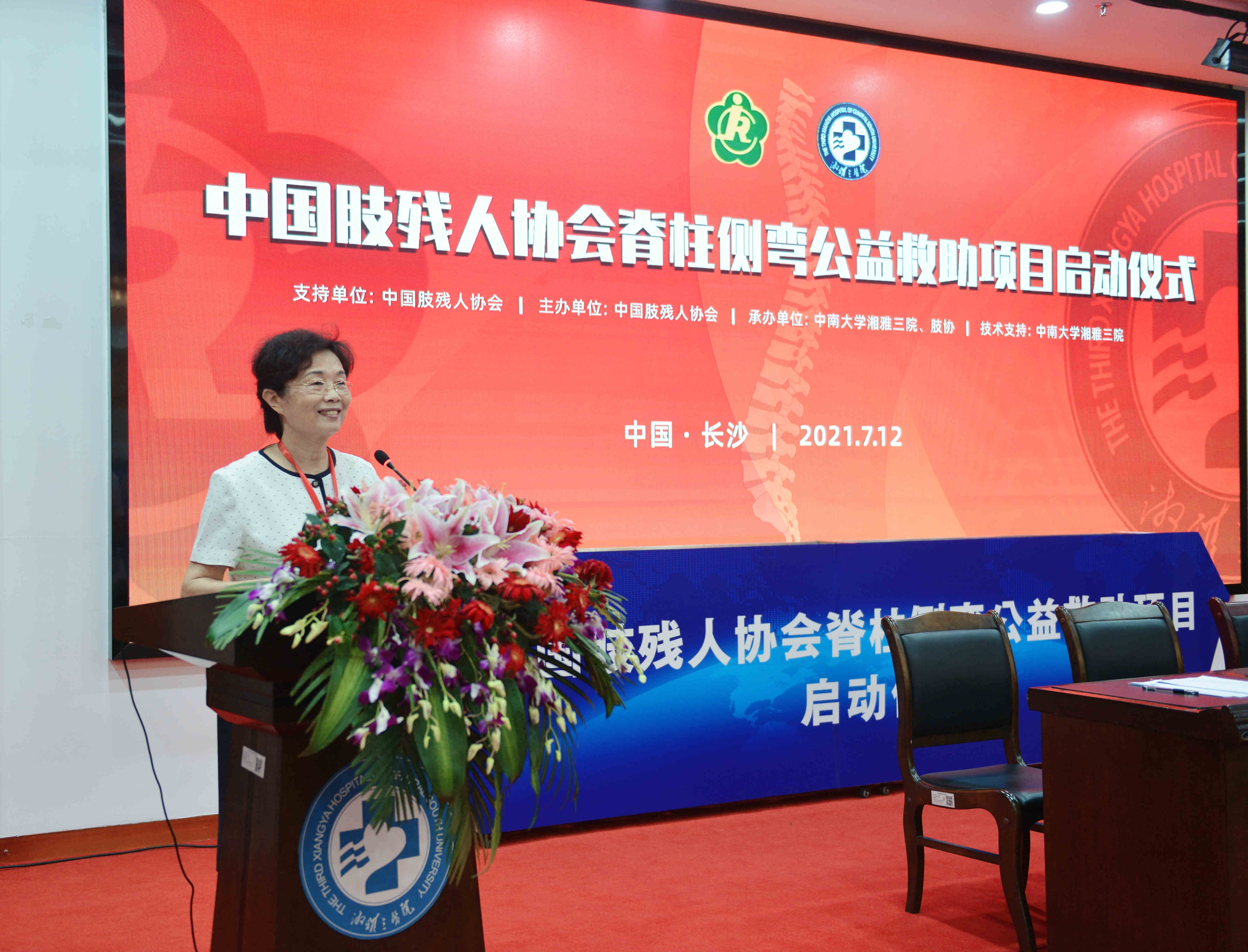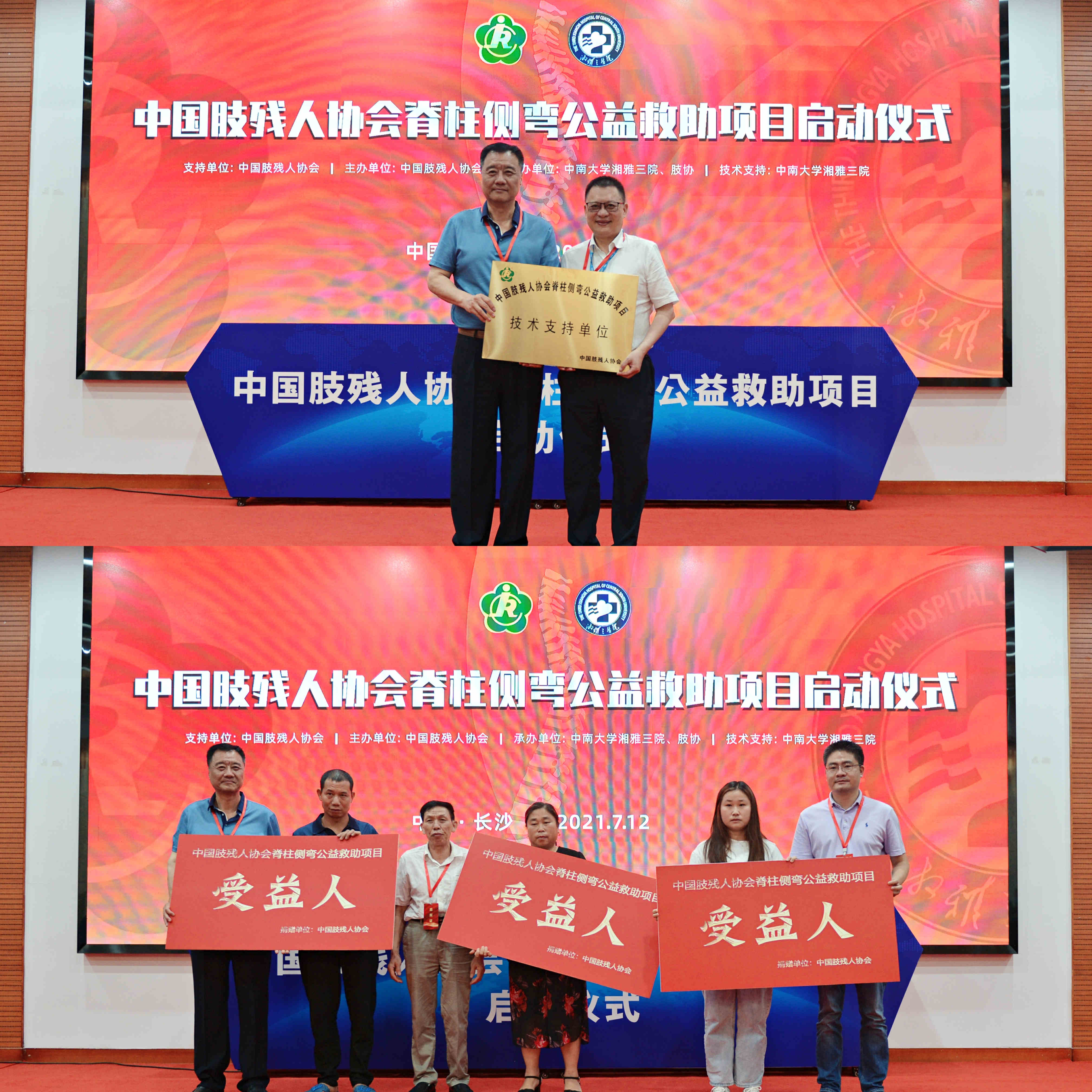7月12日16时,中国肢残人协会脊柱侧弯公益救助项目启动仪式在湖南长沙举行,“雏鹰计划”正式落户中南大学湘雅三医院。中国肢残人协会主席王建军、秘书长田露、湖南省肢残人协会主席谢志强、副主席王炯阳、中南大学湘雅三医院院长张国刚,党委委员、副院长朱利勇等出席活动。湘雅三医院社会服务部主任刘伶、脊柱外科主任邓幼文参加。本次启动仪式通过网络平台现场直播,引起社会各界广泛关注,线上观看达6万人次。