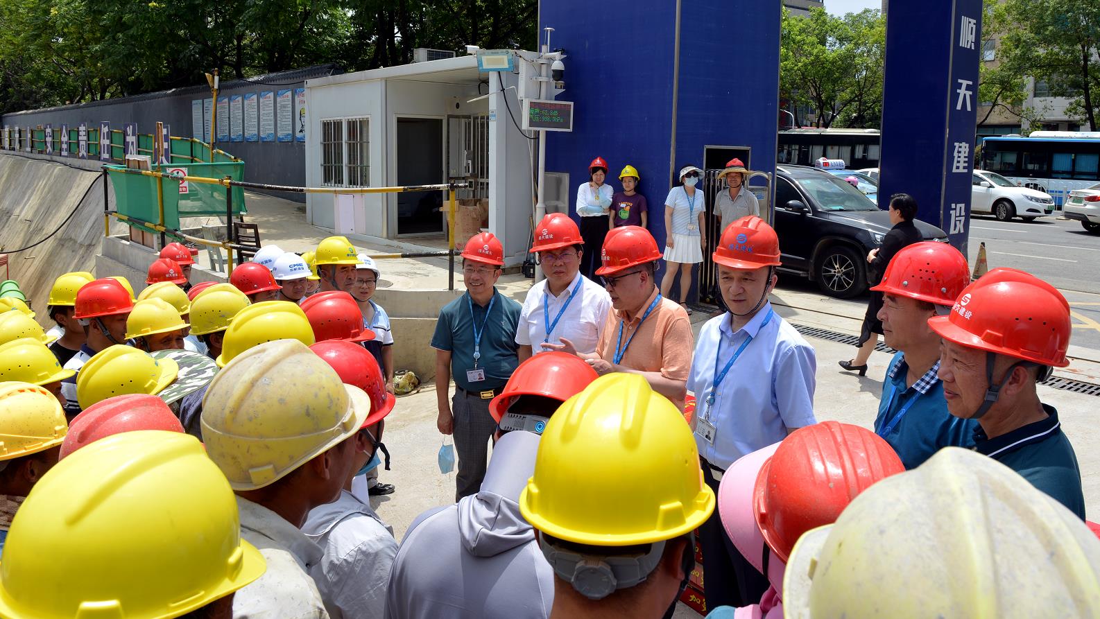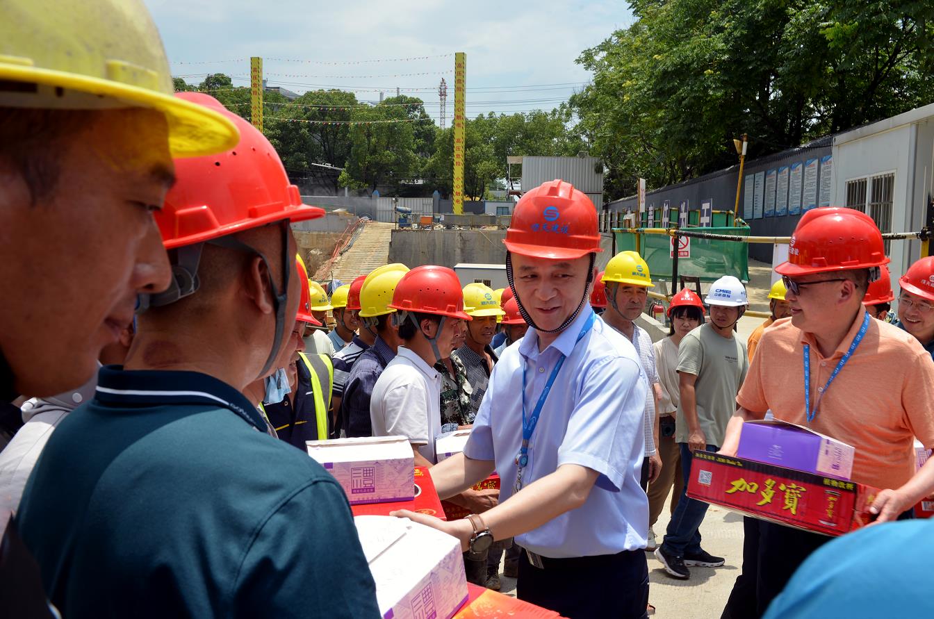 在医院新门诊医技楼基建工地上,基建科工作人员与建筑工友们正顶烈日冒酷暑,用汗水和智慧奋力建设新门诊医技楼。院领导为他们送来了爱心凉茶和慰问食品,并叮嘱他们在安全施工的同时要注意防暑降温,整个建筑工程要安全、有序、稳定施工,确保优质、高效的完成好工程建设,将来更好的为患者提供高品质的医疗服务。