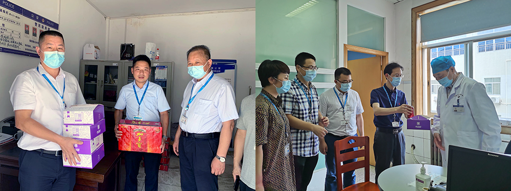 在急诊科、门诊诊室、医院核酸采样检测点,院领导给正在诊治患者的医务人员送上关爱凉茶,并亲切问候,嘱咐他们要注重自身安全,科学防疫,防高温战酷暑,要千方百计地救治病友。