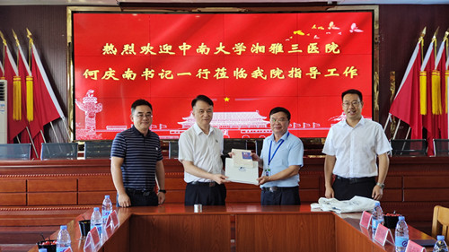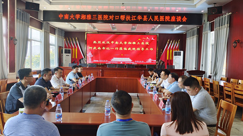 7月12日,中南大学湘雅三医院党委书记何庆南带领医疗团队来到江华县人民医院和第一人民医院调研指导工作。县委常委、副县长张国栋参加座谈,县人民医院、县第一人民医院负责人,湘雅三医院党办、医务部等负责人陪同调研。