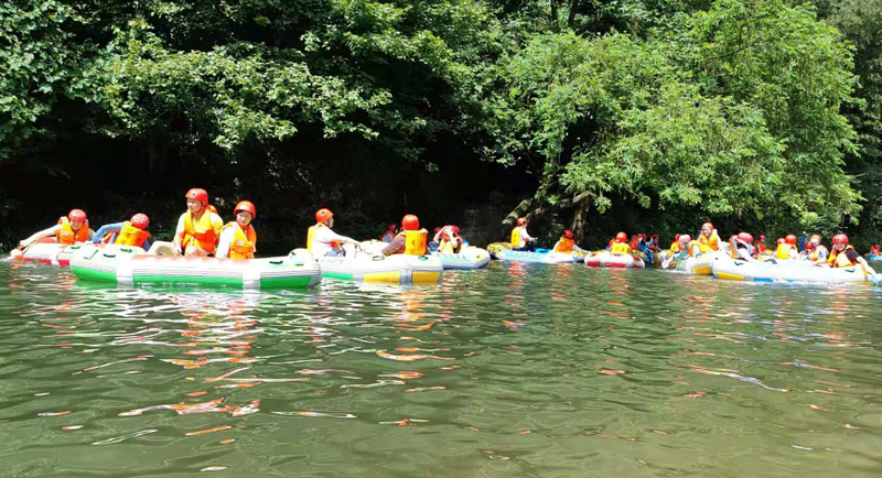 七月骄阳似火,大家精神抖擞,相伴同行,一路的欢歌笑语在青山绿水间轻快流淌。漂流途中不时遇到险滩急流,大家相互扶持、相互鼓励;平缓的河道上,大家放松嬉戏,打打水仗、拍拍风景,不亦乐乎。部分不宜下水漂流的同事则选择游览周洛大峡谷,登悬崖陡壁,赏林中美景,放飞心情,续充能量。