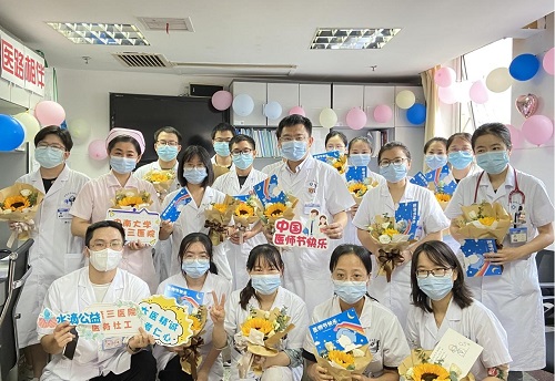 2019年以来,中南大学湘雅三医院团委在院党委的领导和支持下积极探索医院人文关怀体系建设与社会公益资源的联动,创造性开展医务社工与志愿服务工作,形成了“医疗机构与公益机构合作,医护人员、专职社工与志愿者协同,患者、家属、社工和医院四方受益”的新湘雅公益服务长效机制。本次医师节关爱活动旨在关心关爱奋战在临床一线的医务工作者,增强医师的荣誉感、使命感和获得感,弘扬医师“敬佑生命、救死扶伤、甘于奉献、大爱无疆”的崇高精神。今年医师节恰逢中国共产党建党100周年,“新湘雅”医师在党的领导下,赓续光荣传统,践行初心使命,为抗击新冠疫情和护佑人民健康作出了巨大贡献,在此谨向全体“新湘雅”医师致敬。
