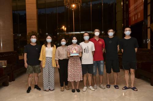 队里有4位队员8月份过生日,虽然处于疫情防控的关键时期,各方面条件有限,但是余晓和酒店工作人员依旧想方设法准备了生日蛋糕,筹备了一场“113岁”集体生日会。4位寿星还收到了后方家人、同事发来的生日祝福。在医师节到来之际,为一线抗疫医生准备了“疫”外惊喜。整个活动虽然简洁,没有鲜花,没有拥抱,但一天疲惫在欢快地歌声中冲散,眼里的泪花诠释着满满的感动。