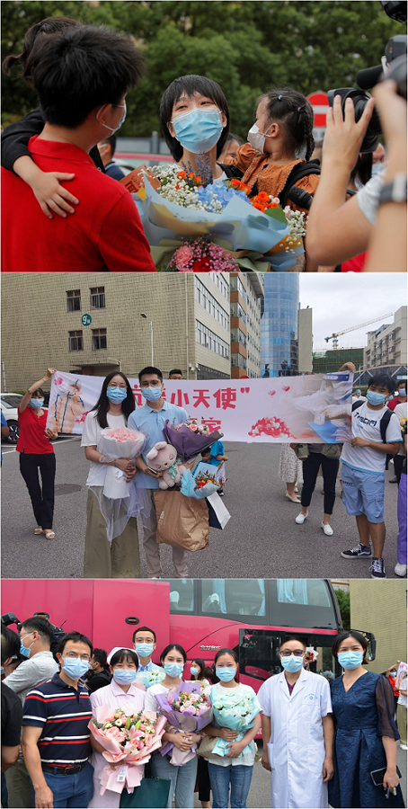 8月24日,中南大学湘雅三医院支援张家界核酸采样队50名队员圆满完成任务,胜利归来。医院全体在家院领导以及相关科室主任、职工代表、家属代表在医院迎接战疫英雄回家。