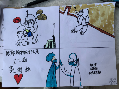 护士刘菲芬记录了采样现场一些有趣并温馨的场景:大叔直接用飙高音的方式做核酸,把现场的大伙们都逗乐了,因为这招实在是“高”;坚强且十分懂事儿的小朋友们,一边握紧小拳头,一边说“阿姨轻点哦”,用善良战胜恐惧,明明很害怕,却鼓足了勇气。这不,我们还收到了小朋友童趣十足的抗疫图画。不得不说,正是有这样善良团结、深明大义的人民群众积极配合,我们的工作进展才得以如此顺利。医生艾金刚说:“无论是行动不便的老人,还是稚气可爱的儿童,无论是怀抱孩子的夫妻,还是淳朴憨厚的农民……一张张温暖的笑脸,一句句‘谢谢你们’就像一阵阵清凉之风吹去了燥热,甜润了心头。”