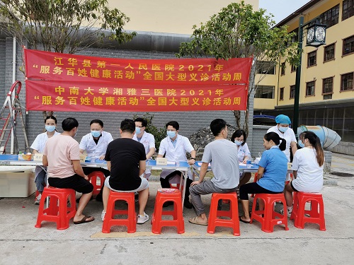 随着2021年“服务百姓健康行动”全国大型义诊活动周的到来,中南大学湘雅三医院积极响应国家卫健委、湖南省卫健委的号召,于9月14日至15日,医院驻江华医疗博士团在江华瑶族自治县第一人民医院、江华县水口镇开展以“服务百姓健康行动”为主题的义诊,受当地群众热烈欢迎。
