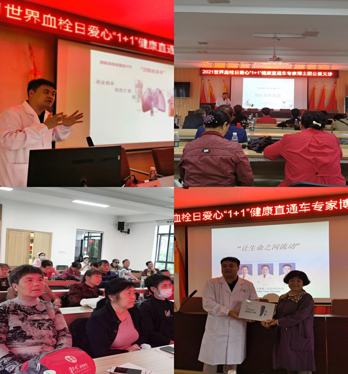 一百年波澜壮阔,九万里风鹏正举。在建党百年之际,为弘扬志愿服务精神,提高社区居民健康水平,促进党团组织建设及与区域联动,10月9日上午,由中南大学湘雅三医院第四党总支、院团委(志愿服务指导中心)、血管外科联合咸嘉湖街道荷叶塘社区委员会共同举办2021世界血栓日爱心“1+1”健康直通车专家博士团公益义诊活动成功举行。活动中,由血管外科姚凯副教授、王征博士、徐宏博博士以及刘立芳护士长等11名医护人员组成的专家博士团,为社区居民义诊及健康指导一百余人次。第四党总支书记孙慧蓉,院团委书记程海威现场协调指导。