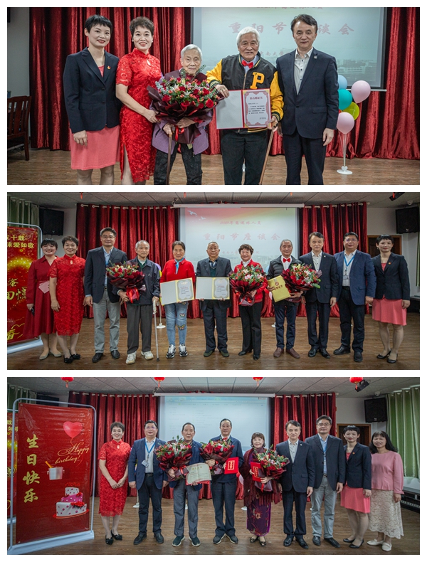 活动还表彰了钻石婚伉俪杨伯勋夫妇和金婚伉俪郑兰香夫妇、陈伟中夫妇、陈雅玲夫妇,之后还为90岁高寿的史毓阶老院长和70岁寿星廖达光、李海军、陈宇三位老同志庆贺寿诞。