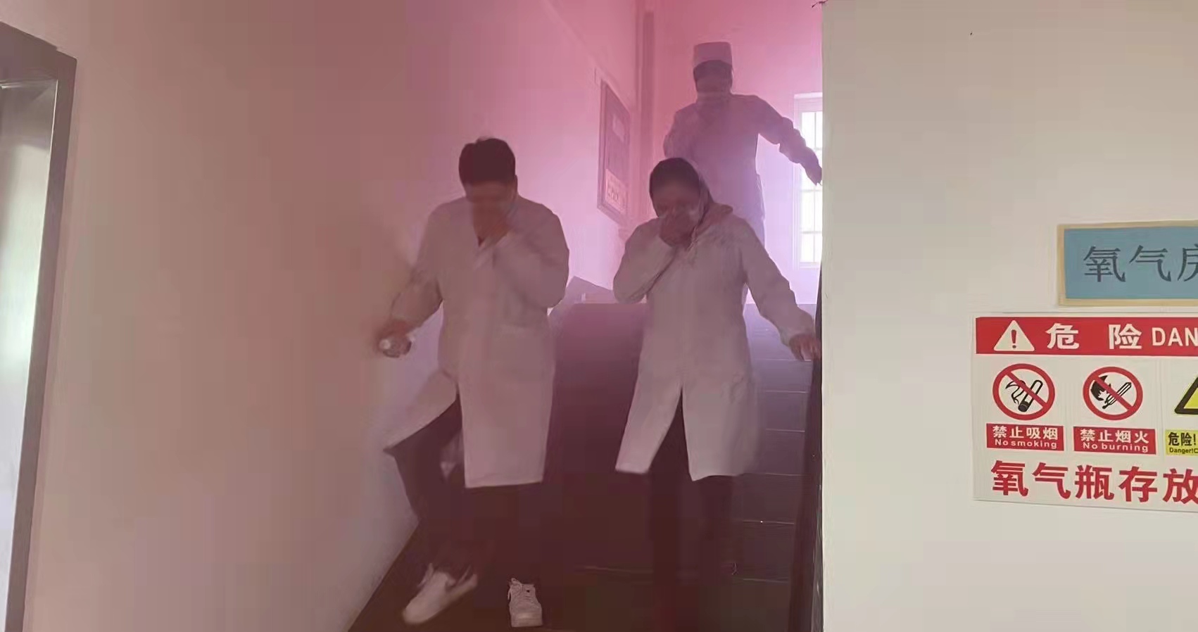 应急疏散演练模拟临床实验室突发火情,全体职工在最短的时间内,自指定路线有秩序地疏散到安全地带。