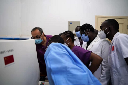机器到位、人员就绪,大家又面临“无米下锅”的新困境。由于客观条件,当地试剂严重供给不足,屈琳与国内检验领域相关专业人员积极沟通,争取支持,几经周折从国内获得了乙肝、艾滋、梅毒、疟疾、HCG、血糖及尿液分析等一系列检测试剂,总算可以满足日常工作基本需要、解决了检验科的燃眉之急。目前中塞友好医院检验科已能开展三大常规、输血前检查、血液生化及伤寒疟疾等传染病的检测,为维持医院正常运营、满足民众看病需求提供了有力保障。随着物资保障的持续跟进和医院的良好运行,塞拉利昂“新冠肺炎”疫情逐步得到控制,屈琳也得以和队友们利用休息时间为当地群众开展义诊咨询及免费检验。