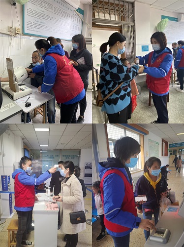 在手术中心支部书记薛娟的号召下,本次志愿服务活动31名党员全部参与,无一人请假。党员们分成五个小组,深入门诊的每个楼层,在门诊入口处负责查验患者健康码、行程码以及测量体温;在一楼带领患者熟悉陌生环境、解答挂号就医疑虑、帮助老年患者使用自助检验打印;在二楼教患者使用自助血压测量仪、引导患者快速找到检验、化验标本等存放地点;在三楼维持各诊室门口患者秩序、解答患者查看检验结果流程等。同志们分工明确,用真诚、主动与热情解决了患者需要和困难,提升了患者就医体验。