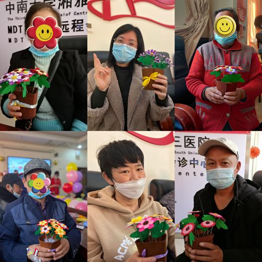 活动尾声,为了促进医患之间交流与互动,医务社工邀请患者和医护人员一起制作手工花,并请他们亲手送给自己想感谢的人。“我想把花送给我的医生,感谢她对我的治疗”,患者黄先生在社工帮助下,一步步完成了制作,并把花送给了自己主治医生。最后,社工精心准备好感恩节水果蛋糕和礼品,向医护人员送去感恩节的温暖,让他们感受到来自医院和公益组织的关爱。
