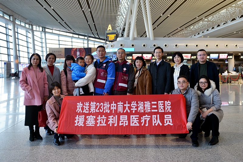 12月23日上午,肖际东、王潇随中国(湖南)第23批援塞拉利昂医疗队启程奔赴塞拉利昂,医院党委委员、副院长欧阳文,相关部门负责人、队员家属、同事等到机场为队员们送行。