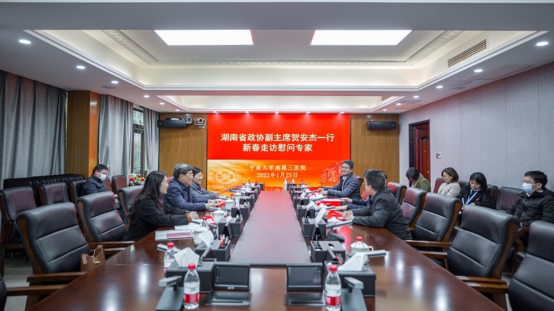 1月25日,湖南省政协原副主席贺安杰一行到中南大学湘雅三医院看望慰问医院学科领军人才吕奔教授,并致以新春的问候。湖南省人社厅二级巡视员熊敬、省人社厅专家服务中心副主任尹丹,医院院长张国刚,党委委员、副院长朱利勇出席,相关职能部门负责人参加,医院党委书记何庆南主持。