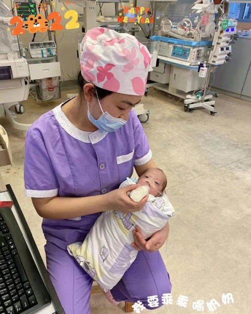 “宋妈妈,新年快乐,我有乖乖喝奶噢,我也想回家陪爸爸妈妈过年。”我想,这是一个已经入院96天的早产宝宝的愿望。