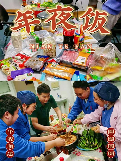 忙碌之余,这群可爱的“值守人”也拥有一桌别样的年夜饭。热气腾腾的火锅,青翠欲滴的蔬菜,满目琳琅的零食,再来一杯可口舒爽的饮料……构成了这诱人又美味, 热闹又喜庆的场景。谁又能说这不是另一种团圆呢?