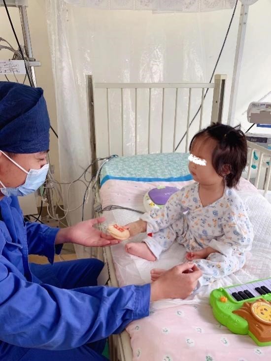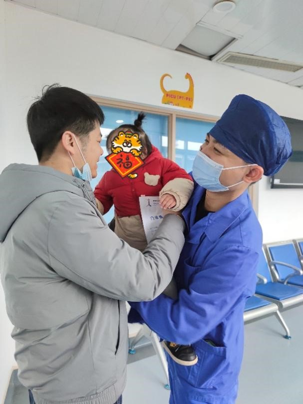 宁宁(化名)是一个只有一岁多的小患儿,因反复抽搐由外院急诊转院入PICU。离开家人的陪伴,来到陌生环境的她异常吵闹,无法安抚。为了让她配合治疗,我们绞尽脑汁,讲故事、玩玩具、播放动画片、看画册、擦澡、洗头、喂饭……患儿在温和的安抚声中、在润物细无声的陪伴和有趣的情景游戏之中终于敞开心扉、展开了笑脸。