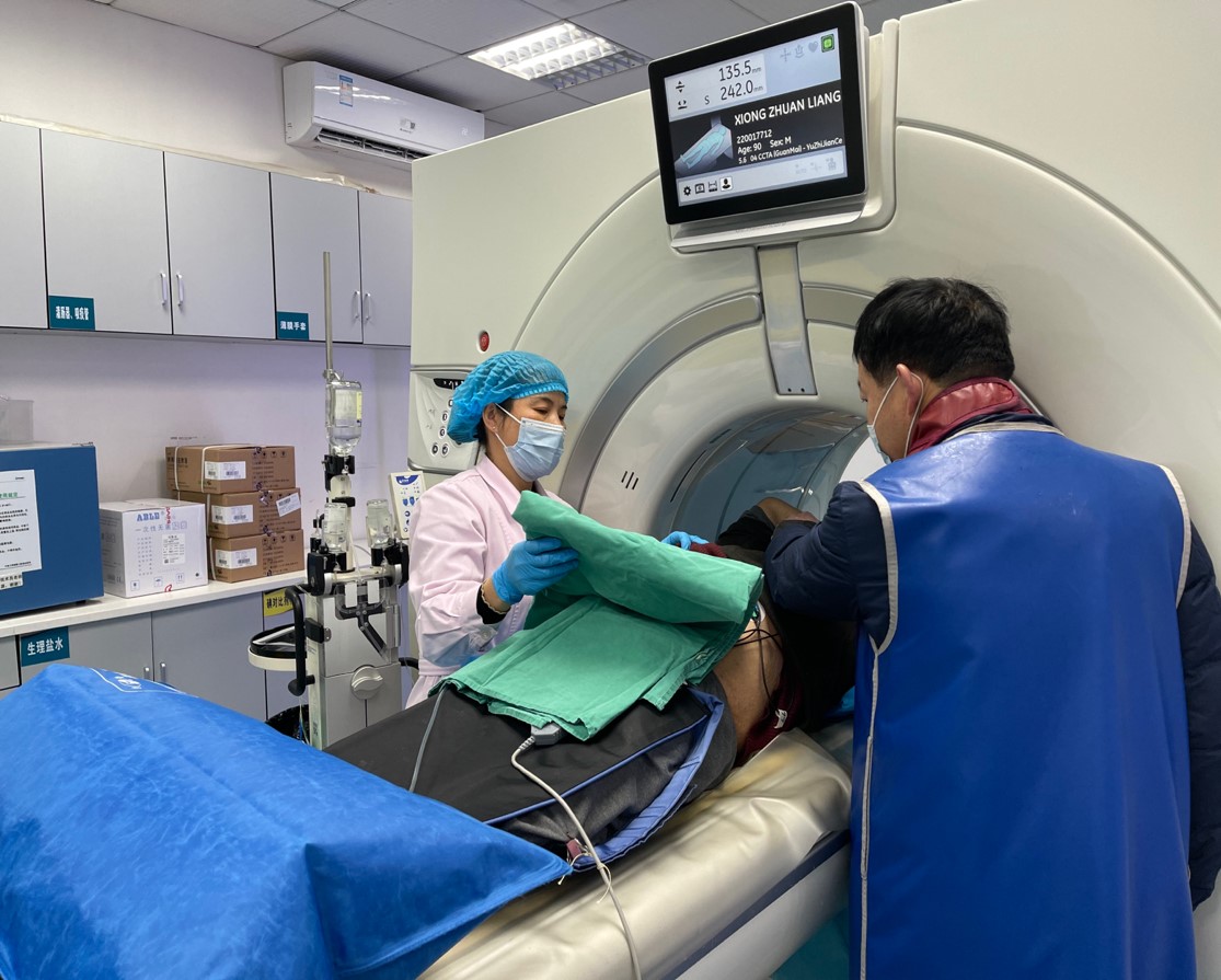 果然,新年门诊开放的第一天,CT检查的患者接连不断。放射科副主任胡鹏志身当表率,带领陈蓓、陶冶、江小青、丁雨洁、刘俊、龚思华等技师组老师分别在CT1、CT2有条不紊展开工作。为了解决外科楼大ICU患者病情重、转运风险大的问题,胡鹏志特地为ICU患者增开了就近检查绿色通道,开放了外科楼的CT3室,以减轻ICU同事转运的负担,保证患者的安全。