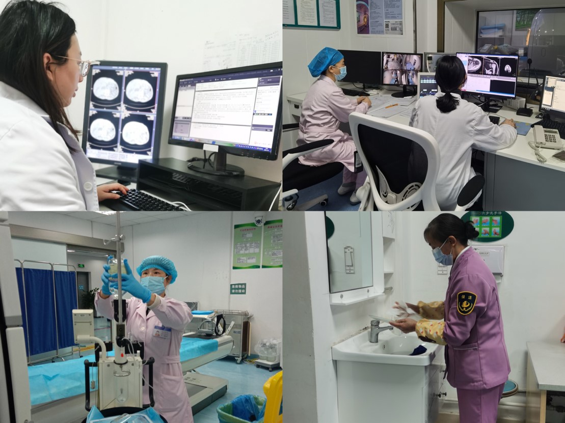 年初四,春日的阳光露出了久违的笑脸。尽管气温仍然很低,值班护士李小玲早早地来到科室做好检前准备:打开候诊大厅的暖空调,为患者准备做检查之前要喝的温开水,检查注射泵、抢救用物等能正常使用,以迎接春节之后的第一拨CT检查高峰。主管护师许伟、保洁员唐阿姨也早早来到科室帮忙。