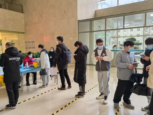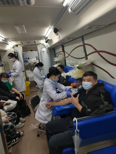 原计划下午2:30开始活动,不到2:00外科楼大厅前来献血的人群就排起了长队。他们中有多年一直坚持无偿献血的医护人员,也有即将从学校毕业踏上工作岗位的年轻医务工作者。他们中有人趁着工作间隙前来献血,有人刚值完班顾不上休息,还有人准备献完血又匆匆回到工作岗位上。