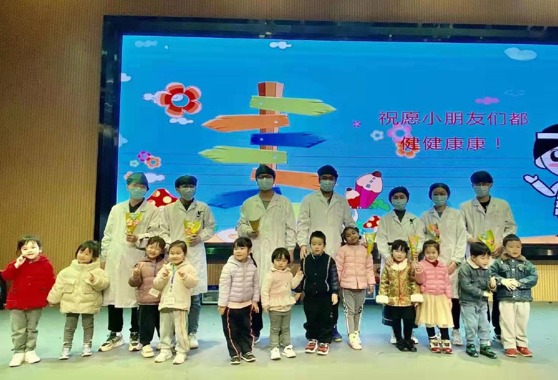 讲座结束后,卿翔与医疗团队分组对全园小朋友们进行常规耳科检查,并开具了随诊报告。