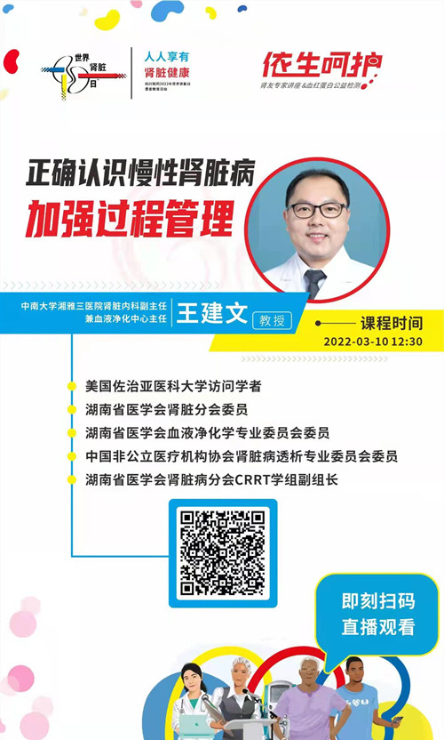 王建文在活动后表示,肾脏健康问题目前是全球关注的公共卫生问题,慢性肾脏疾病已经成为我国居民面临的主要健康威胁之一, 我们需要积极倡导大家正确、科学地认识这一疾病,鼓励知识强肾,做到早预防、早筛查、早治疗,从而获得高质量的生活。