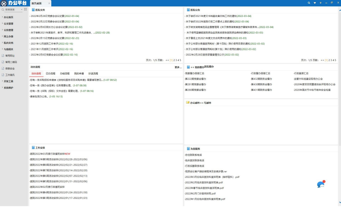 在“互联网+”管理的信息化建设背景下,按照医院第五届四次教职代会、工代会暨2022年医院工作报告中提出的”提质升级办公系统,全面实现办公移动化、无纸化”的精神,由院办牵头、信息网络中心技术实施,全院各管理部门配合下的全新湘雅三医院办公系统于3月14日正式上线。系统推出10余项新功能和微信移动版OA,新首页简洁、规整,操作更为人性化,能便捷处理多项工作,助力广大职工随时随地、更加轻松有效地工作。
