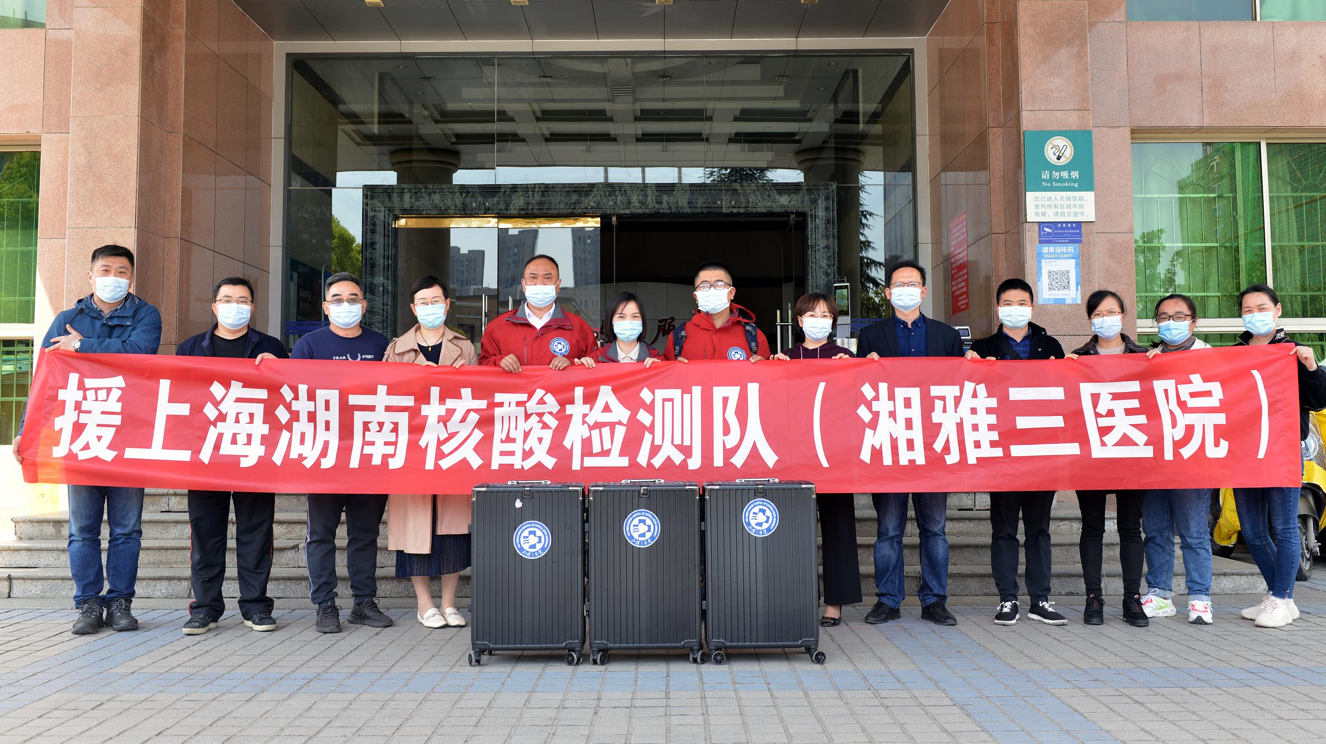 根据国务院联防联控机制医疗救治组部署要求,4月2日,湖南省连夜组建核酸检测队支援上海市疫情防控工作,4月3日下午,中南大学湘雅三医院3名队员火速集结驰援上海。