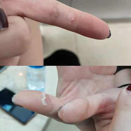 看到队员们的努力与艰辛,我内心是无比感动与心疼的。女孩子们在生理期仍然要坚持工作12小时;防护装备在脸上留下深深压痕;开盖拧盖磨破了手指头,打起了水泡;长时间加样造成双手胳膊难以抬起;长时间站立导致双下肢水肿;日夜颠倒造成失眠、难以入睡,还有很多无法诉说的艰辛……除了辛劳,还有南北饮食差异带来食欲不振,两点一线单独居住带来的孤独感,这些都是我的队员们难以克服,却咬牙克服的险阻。