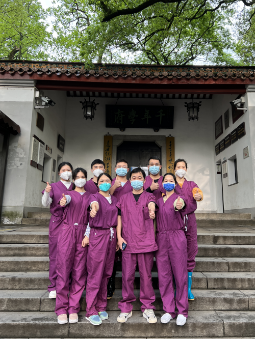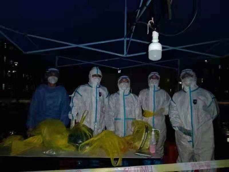 在医院的统一协调下,移植队伍迅速在湖大校园吹响战斗的号角。其中科室张盛副教授委任为红码区的组长,负责现场统筹与布置红码区的各项工作。作为一名“援鄂老兵”,他除了分享成熟的现场经验之外,他还是第一个冲锋陷阵,带领小组在疫情高危区域进行核酸采集,尽显共产党员的担当和使命;队伍中其他成员则是被派至各个区域进行采集,为了保质保量的完成任务,红码区队员们需要每日多次徒步往返7层红码楼区上门采集,汗流夹背更是家常便饭,工作至凌晨已成常态化;黄码区队员们由于工作任务重、时间紧,现场工作中,队员们经常废寝忘食……在各项困难面前,9名移植队员们没有选择退缩,而是以“不破楼兰誓不还”的斗志,与湖大学子一道进行持续奋战。秉持着召之即来,来之能战,战则必胜,永不言败的新湘雅精神,努力发挥兵团作战的优势,圆满的完成各项任务。