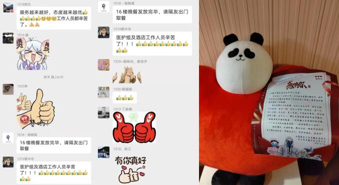 除了体力劳动,团队每天进行头脑风暴,讨论每一次进入隔离层后发现的问题,不断优化流程。从入驻第三天开始,工作流程更加优化,团队分工合作更加明确。同时,对酒店工作人员的培训逐步到位,各方人员相互配合衔接更有默契。每个维度的工作质量均大幅度提升。每天上午10点完成采样,保证隔友们尽早得到当天的核酸结果;配合酒店工作人员送三餐及发放生活物资,保证隔友们以愉快的心情享用三餐;下午1点前后勤人员与团队配合完成打包转运垃圾,提高隔离酒店环境质量;管理人员与团队配合,在线及时解答隔友的求助,为隔友们的身心健康提供帮助。