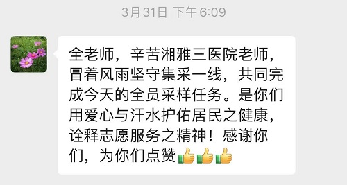 望月湖社区领导感谢湘雅三医院核酸采样应急队