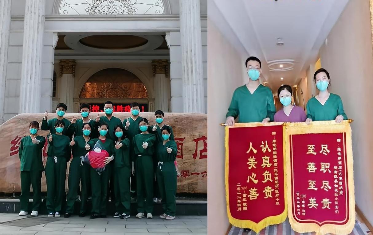 3月15日、30日,应长沙市岳麓区新冠肺炎防控指挥办公室要求,湘雅三医院先后派遣2人、16人前往岳麓区酒店隔离点驻点保障。截止4月10日,湘雅三医院驻维也纳酒店(银杉路店)隔离点医疗队共计顺利平安解除隔离人员约103名、转运4人,长沙西站维也纳医疗组共计完成189位密接人员的隔离监测工作,圆满完成了此次隔离酒店防疫阻击战。