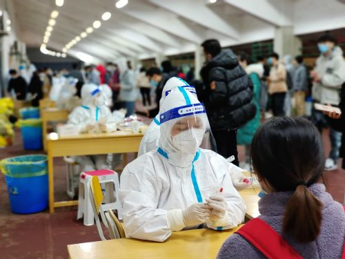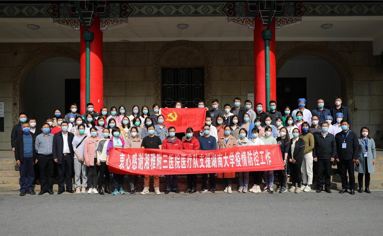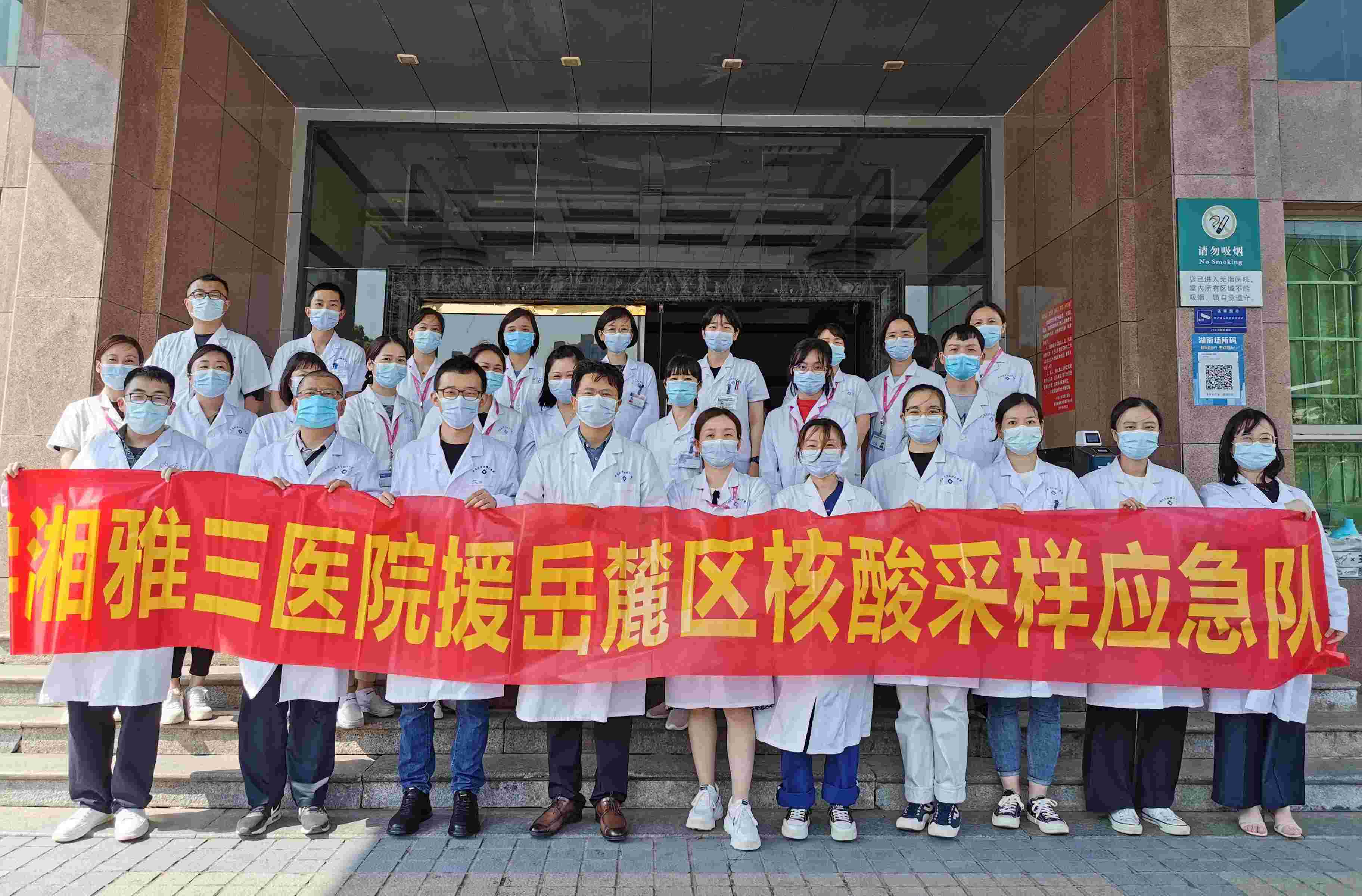 3月29日,中南大学湘雅三医院派出51人核酸采集队进驻湖南大学为全校师生进行采样工作。队员们连续工作6天,7个场地,45个采样台,13支上门采样队。他们在湖南大学星罗遍布的楼栋之间来回穿梭、爬上爬下,不少人的膝关节都肿了。至4月2日,51名湘雅三医院医护工作者与其他医疗队及所有志愿者并肩作战,共同完成了连续8天8轮全员核酸检测及部分人员抗原检测。