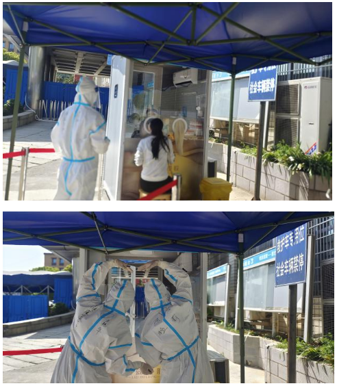 3月30日,长沙各区开展全员核酸检测,卫健委再次下达任务,健康管理中心主动响应,关闭四楼全面体检区组建第三批抗疫机动队。曹霞、陈茗、陈妮妮、肖渊茗、赵琳琳、罗水源、曾文、易文、漆艳玲、姚雯钊、刘郸、王慧、刘小芳、刘微、朱喜、胡小平、段明勋、陈玲、张珺、曹娇20位医护“抢”到名额,第二天便“化身”大白,深入各街道、社区开展核酸采集工作。无论是日晒还是雨淋,所有机动队队员以专业的能力,标准化的操作和认真的工作态度获得了社区工作人员和老百姓的一致点赞。截至目前,上述人员已参与三轮检测工作,完成近五万人次核酸检测。