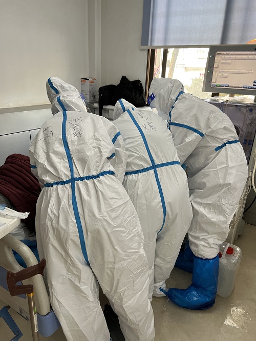 3月30日晚上11:30,医院肾脏风湿免疫科主任张浩、肾脏风湿免疫科副主任兼血液净化中心主任王建文、血液净化中心护士长申丽君在接到医院通知后,立即感受到疫情防控的严峻与担当,尽管目前医院血透室在满负荷运转情况,人力资源本身就非常紧张,考虑到康复医院的形式及疫情的来势汹汹,整个肾内人没有退缩,而是勇往直前,同舟共济。