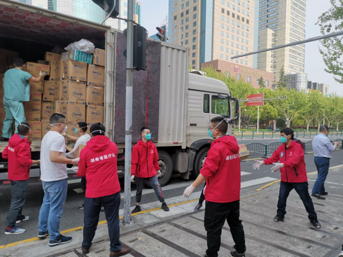 2022年4月20日下午3点,一辆满载着防护物品与生活物资的大型货车抵达湖南省援沪医疗队驻地酒店,这是大后方——湖南省卫生健康委员会为队员们精心准备的物资。